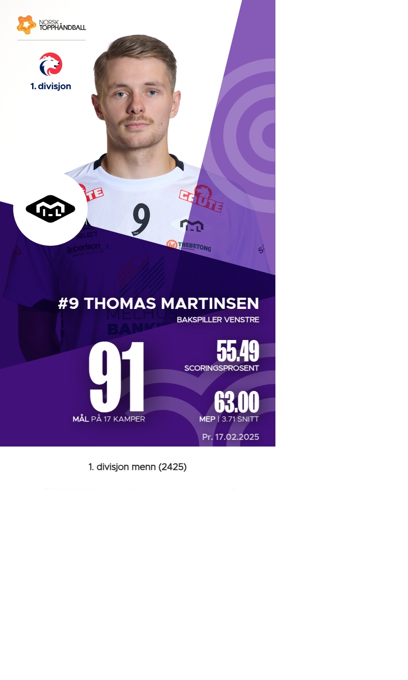 Melhus har flere sterke spillere som bidrar betydelig til lagets suksess i 1. divisjon. Thomas Martinsen har vært en nøkkelspiller med sine 91 mål og 110 assists. Simon Kvam har også gjort seg bemerket, spesielt med sine 59 mål og en MEP på 4.4, noe som gjør ham til en av de mest effektive spillerne i laget. Tarik Repesa har bidratt med 32 mål og 9 assists, og hans MEP på 2.7 viser at han er en viktig brikke i angrepet. I tillegg har Sturla Bergwitz Saur utmerket seg med hele 131 assists, noe som understreker hans rolle som en playmaker. Sammen utgjør disse spillerne en solid ryggrad for Melhus.