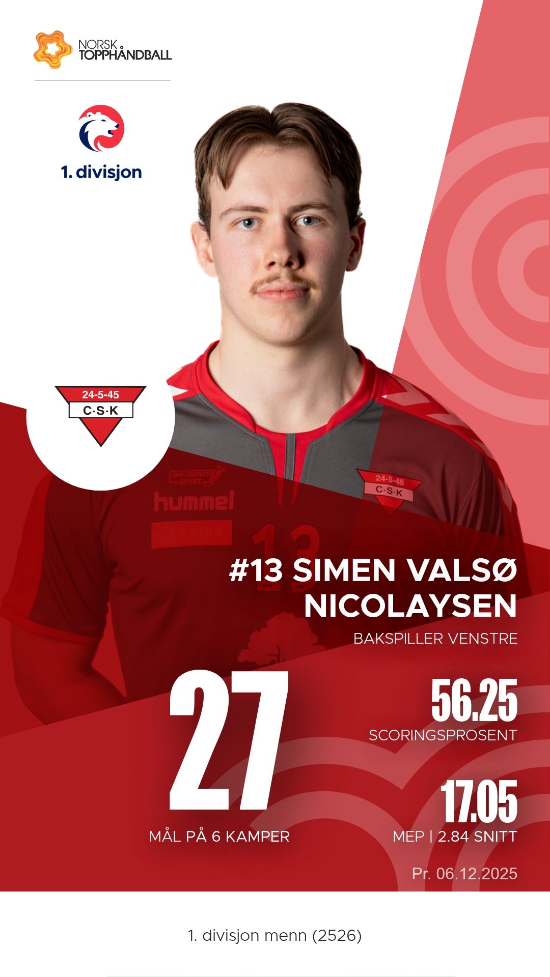 Lørdag 13. desember klokken 15.00 braker det løs i CSK Øvre Rotvoll Arena når Charlottenlund får besøk av Melhus i 1. divisjon menn sesongen 2025/2026.