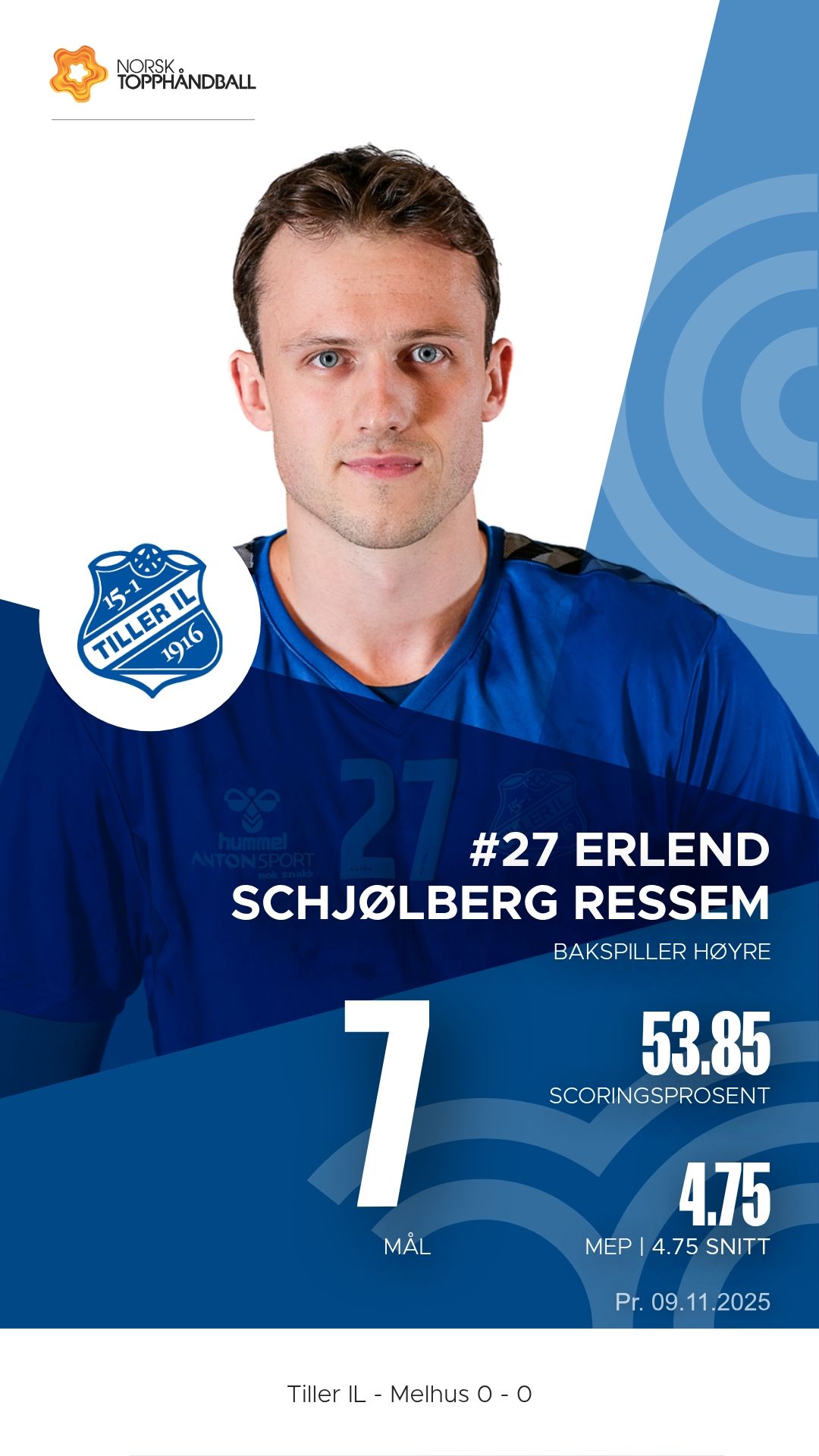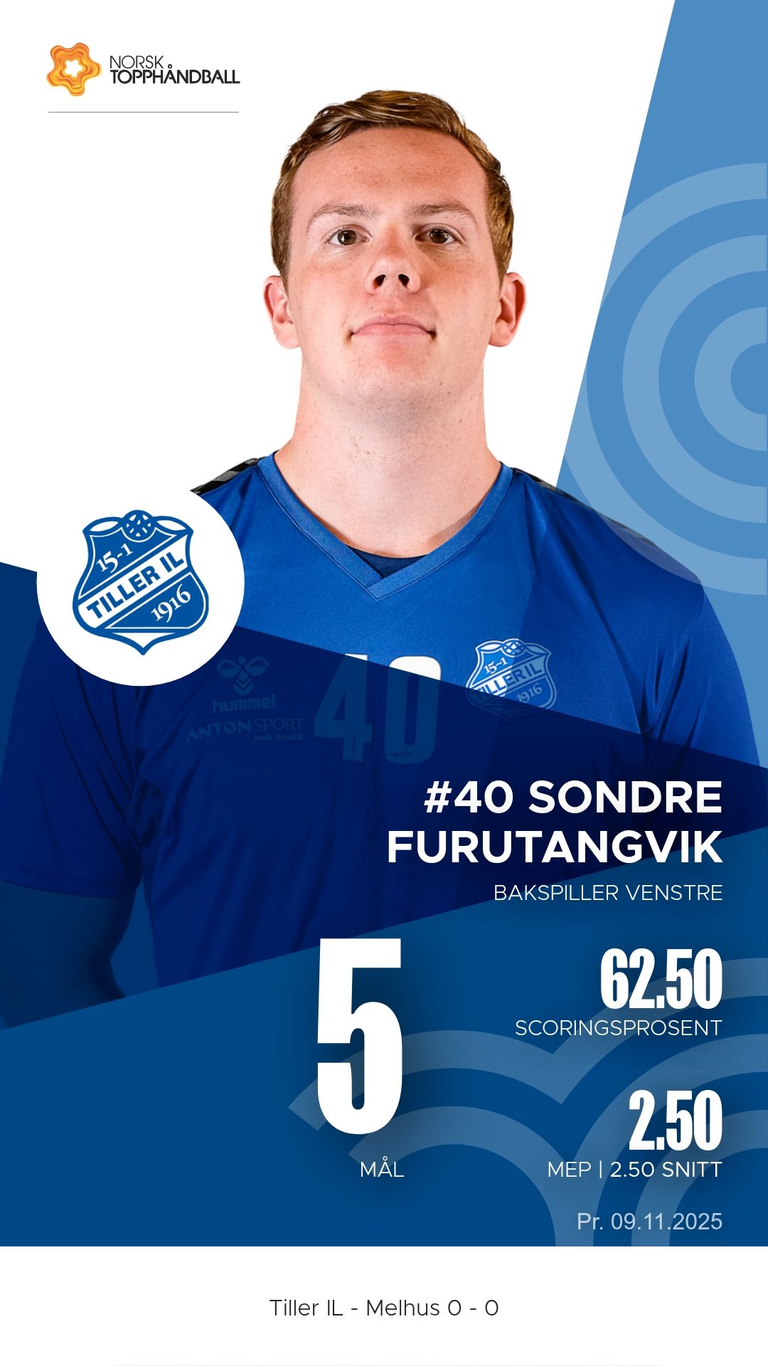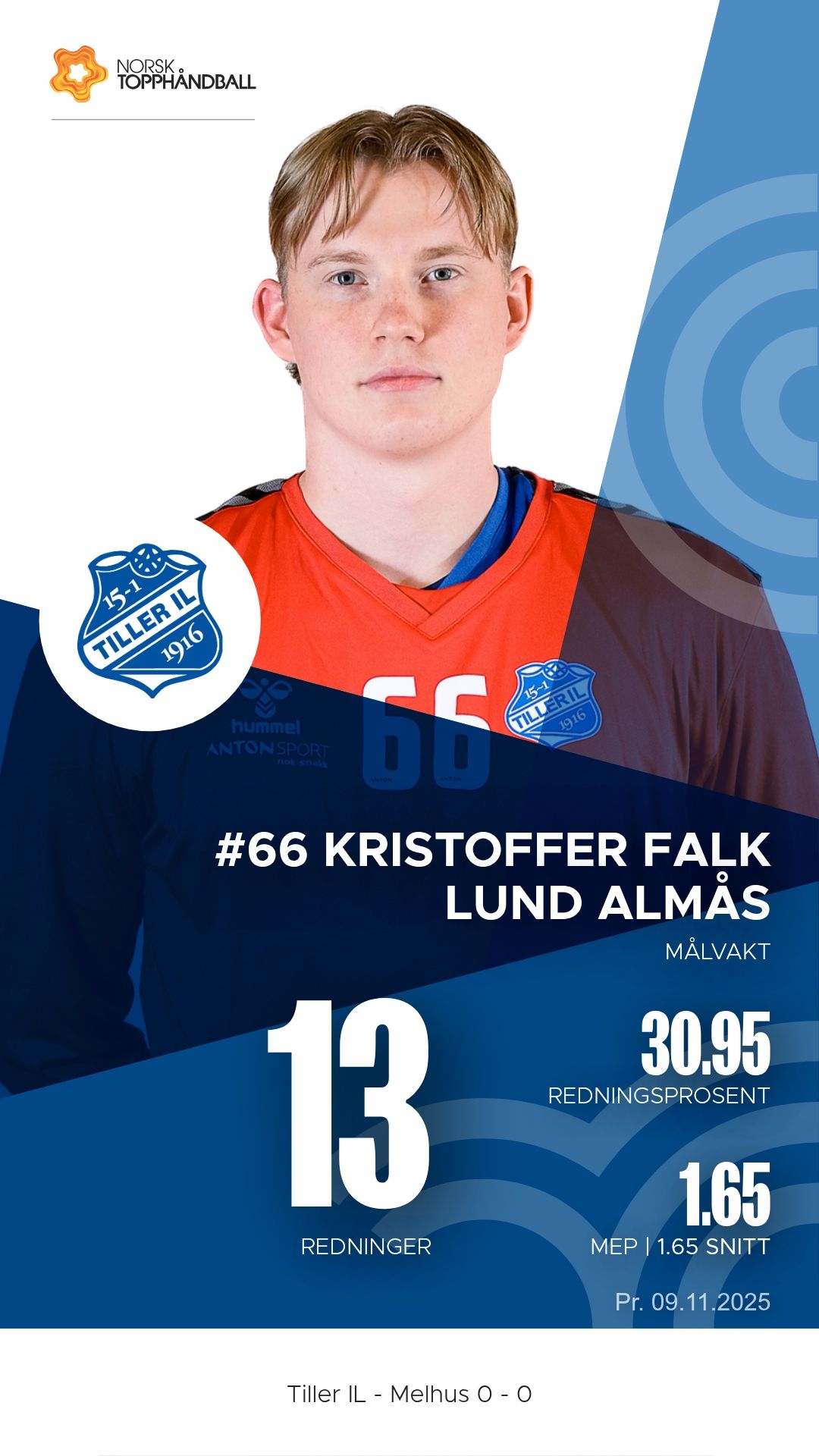 Tiller IL tok imot Melhus i Husebyhallen søndag 9. november 2025 i 1. divisjon sesongen 2025–2026. Bortelaget Melhus viste klasseforskjell og vant til slutt 31–24 etter å ha ledet 17–9 ved pause.