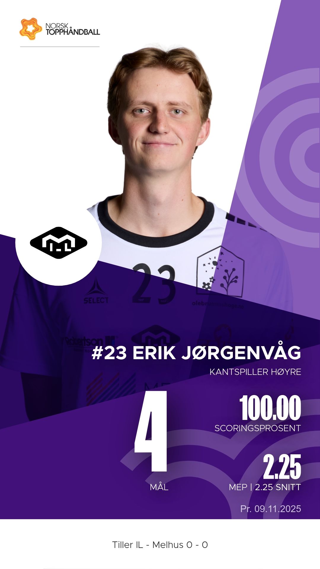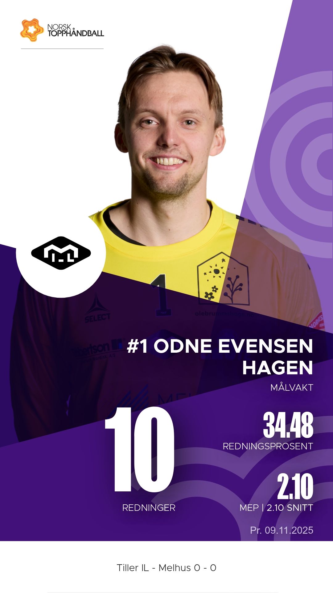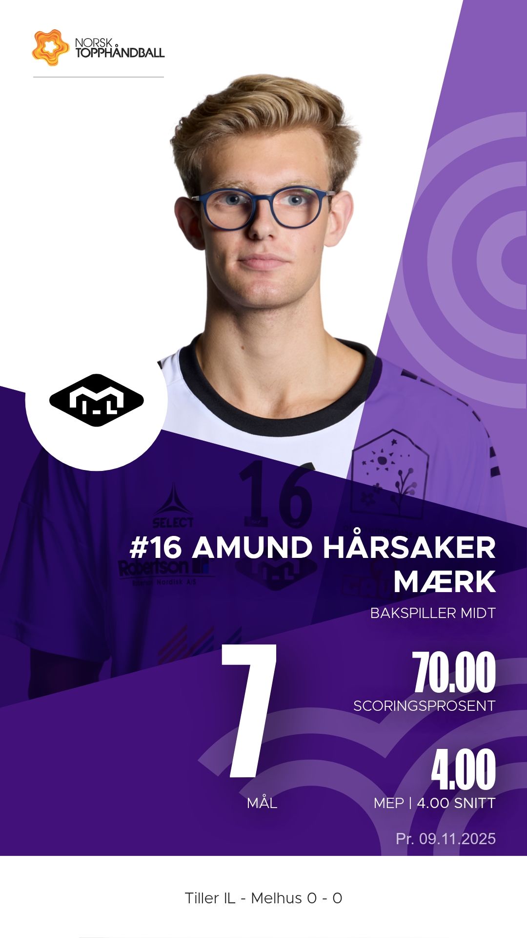 Tiller IL tok imot Melhus i Husebyhallen søndag 9. november 2025 i 1. divisjon sesongen 2025–2026. Bortelaget Melhus viste klasseforskjell og vant til slutt 31–24 etter å ha ledet 17–9 ved pause.