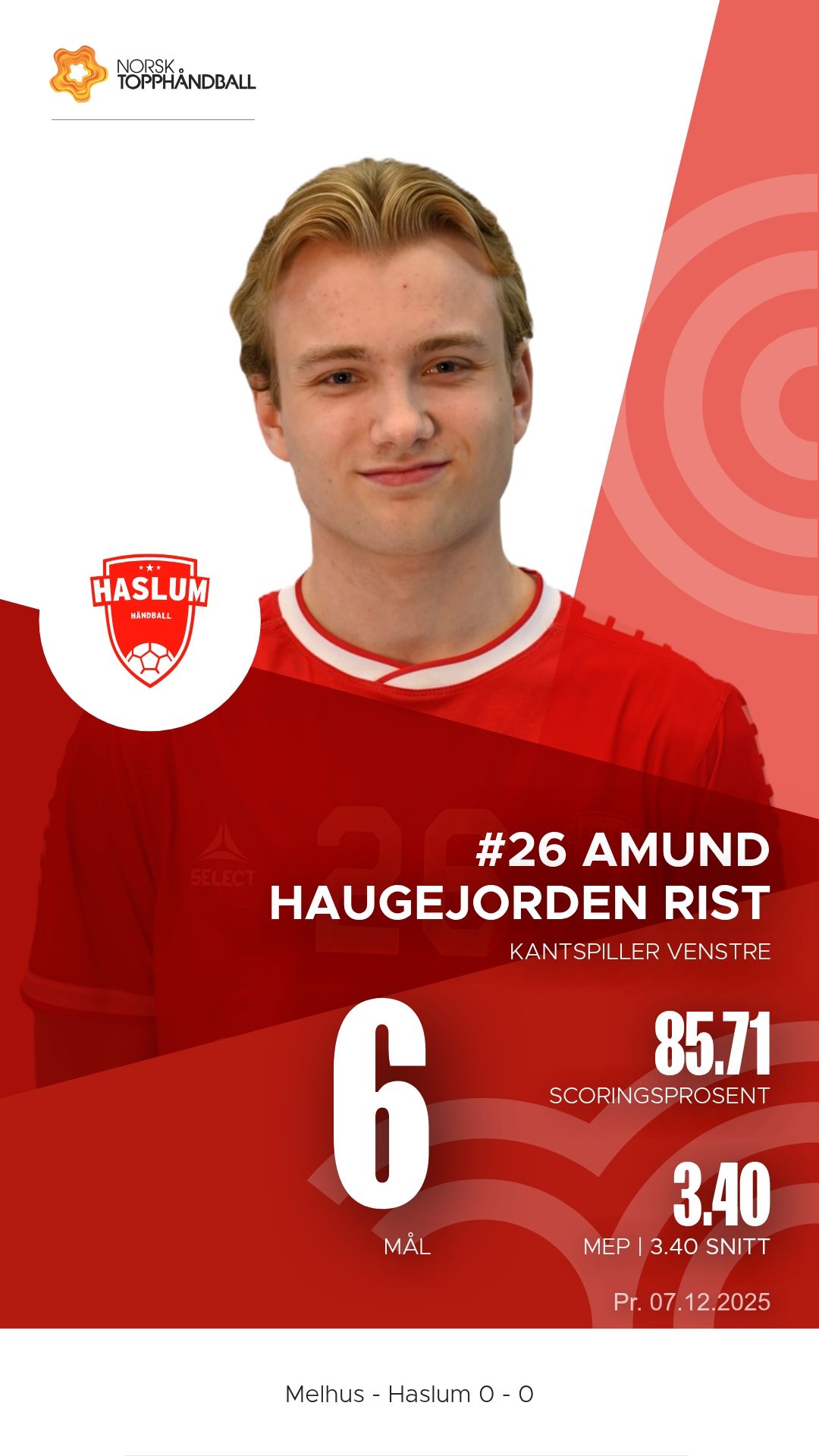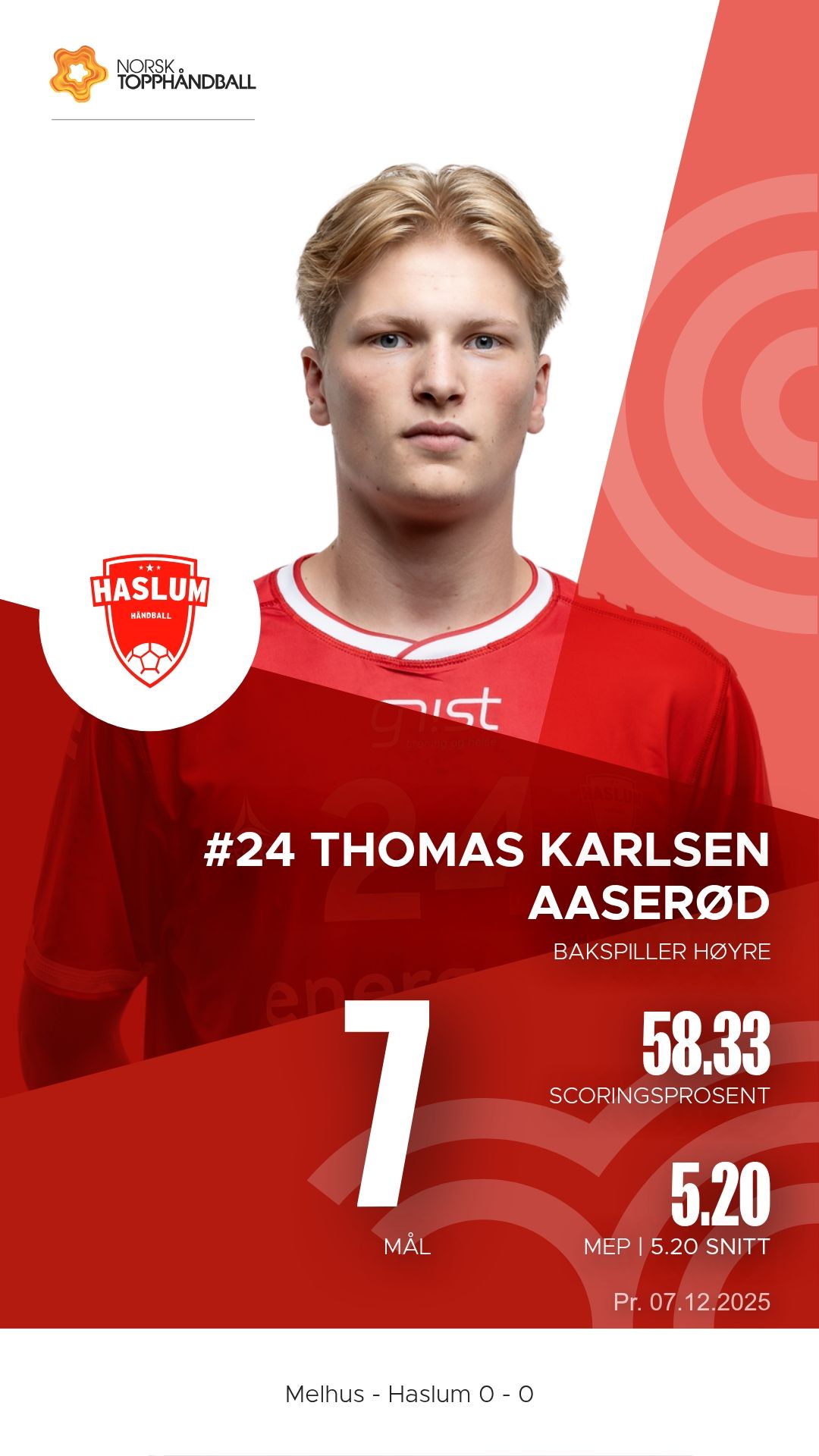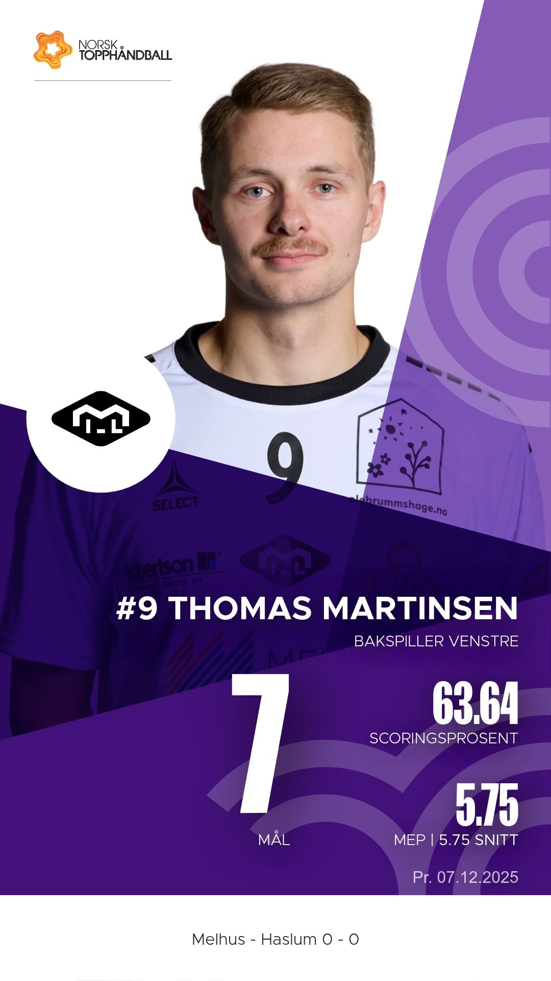 Melhus tok imot Haslum Håndballklubb til kamp i 1. divisjon menn i Melhushallen Nord søndag 7. desember 2025. Hjemmelaget viste solid struktur i både angrep og forsvar og vant til slutt 29–27 etter å ha ligget under 15–16 ved pause.