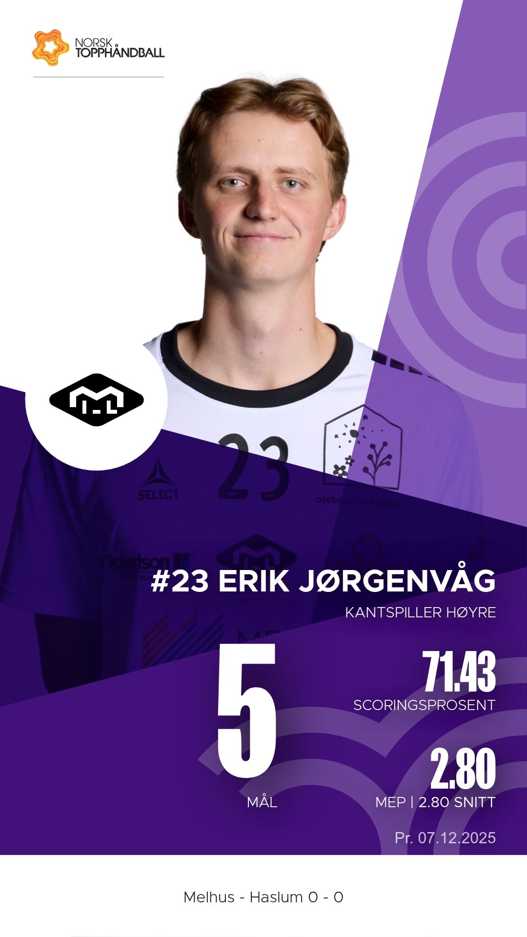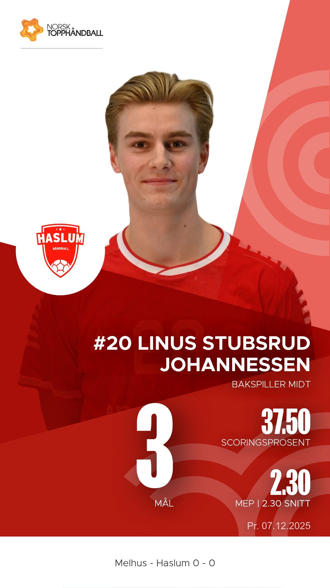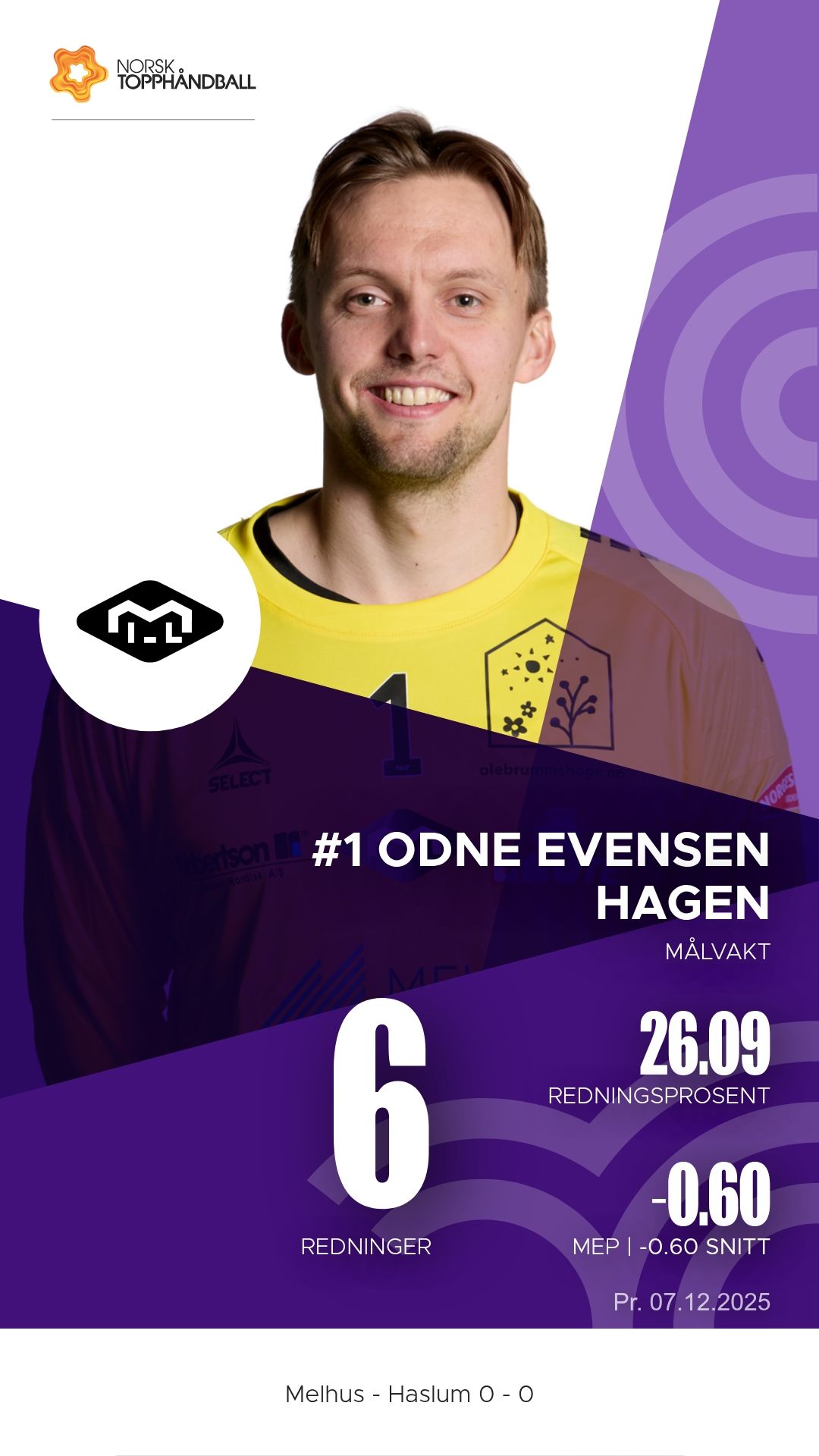 Melhus tok imot Haslum Håndballklubb til kamp i 1. divisjon menn i Melhushallen Nord søndag 7. desember 2025. Hjemmelaget viste solid struktur i både angrep og forsvar og vant til slutt 29–27 etter å ha ligget under 15–16 ved pause.